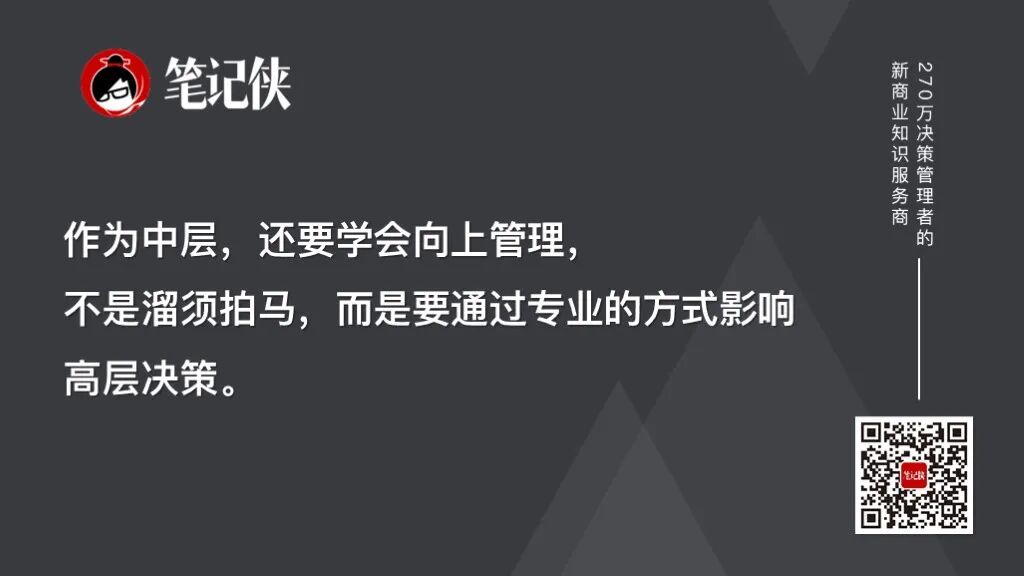 一位科技公司CTO也说: “ 作为中层,还要学会‘向上管理',我不是教你溜须拍马,而是要通过专业的方式影响高层决策。