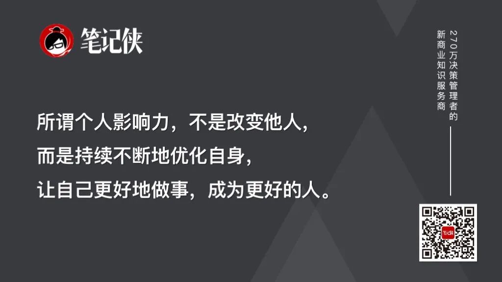 “所谓个人影响力,不是改变他人,而是持续不断地优化自身,让自己更好地做事,成为更好的人。