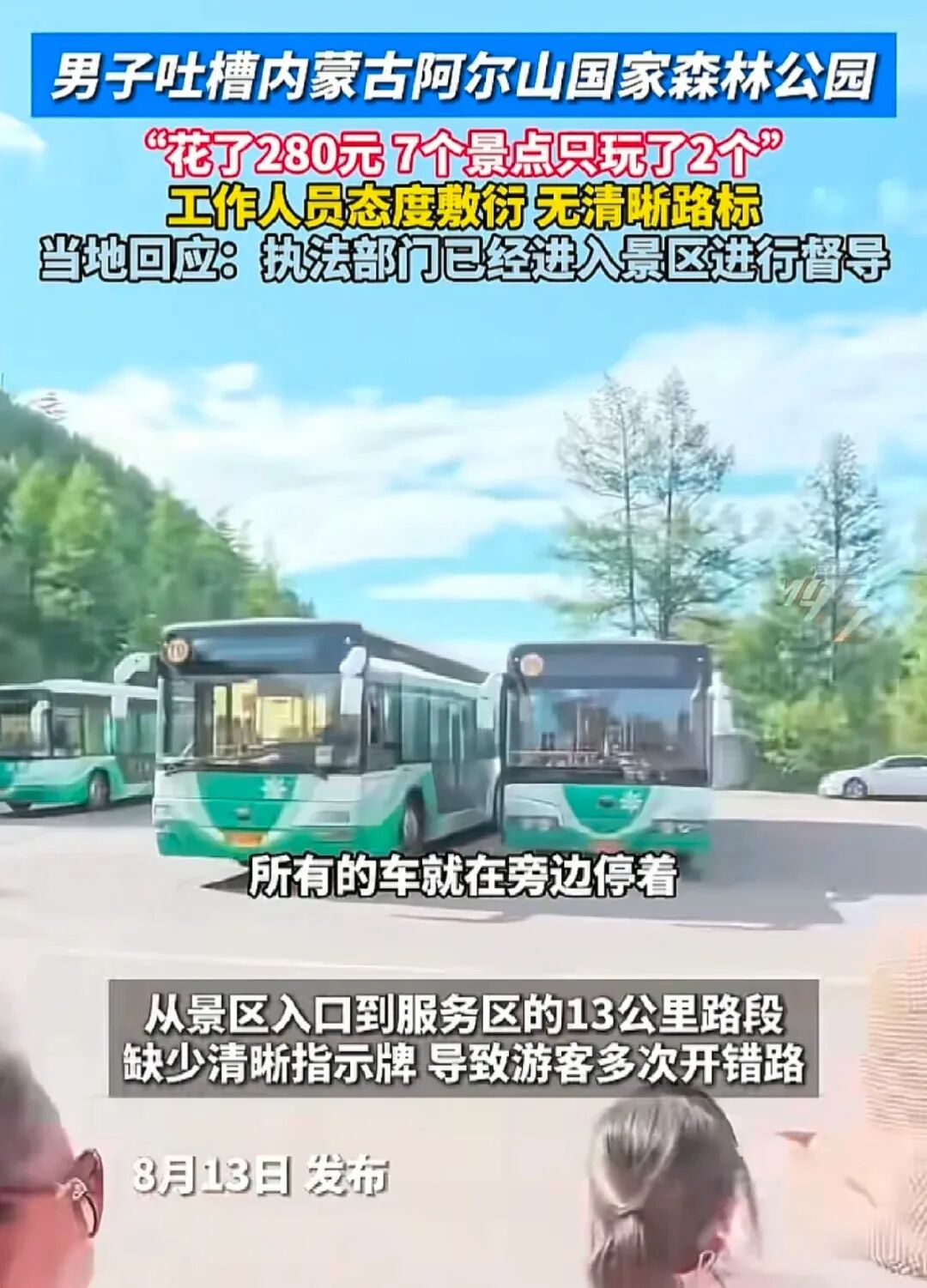 有游客曝出在阿尔山国家森林公园,一天打算逛七个景点,结果因为交通衔接、观光车班次不合理,有些景点连门都没进。