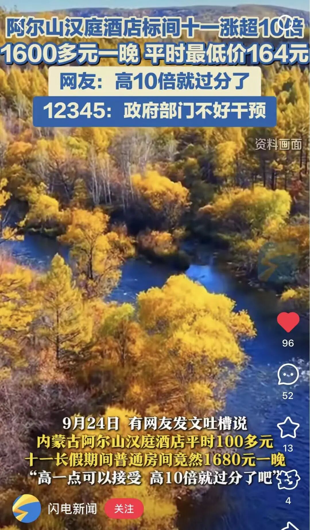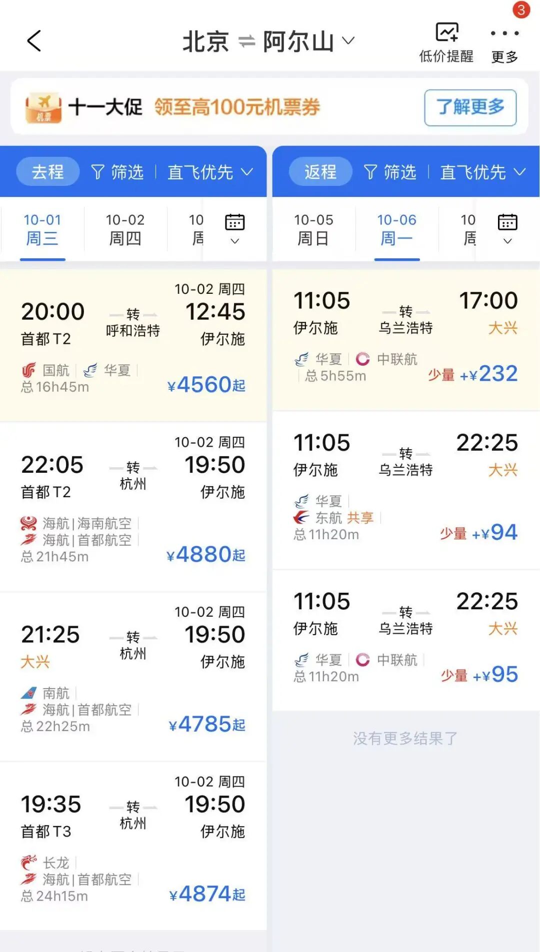以热度比较高的阿尔山为例,十一期间的酒店住宿普遍涨到了500+;