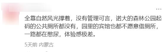 甚至游客在偌大的森林公园,连一个厕所都找不到: