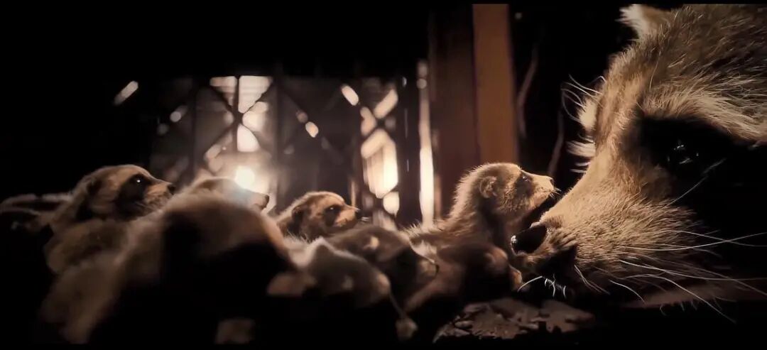 对比2023年的《银河护卫队3》,同样是双线叙事、同样是探讨自我接纳主题,电影选择从看似配角、曾被视为“吉祥物”的火箭浣熊切入,一条线讲述星爵等人为拯救生命垂危的火箭在星际间奋力奔走,另一条线则通过闪回逐步揭开其惨痛的诞生之迷。