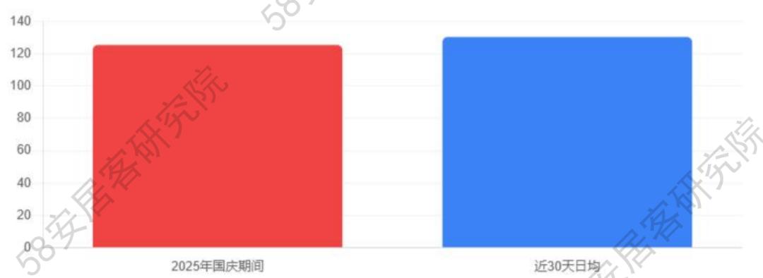 2025年国庆期间日均找房热度为126.05,较近30天的130.99下降了3.77%,表明国庆期间市场热度略低于近期平均水平。