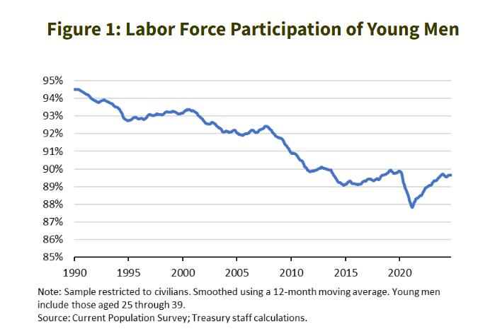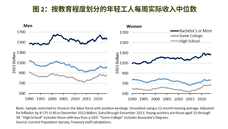 于此同时,美国年轻人的劳动参与率在过去几十年显著下降,而对于拥有工作的那部分年轻人来说,劳动收入则一直在低位徘徊。
