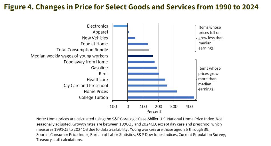 近些年因为货币放水、贸易战、关税战,引发通货膨胀不断上升,导致食品、交通、能源等基本生活开支全面上涨,而工资增长却相对滞后。这使得年轻人在支付了学生贷款和房租之后,维持体面的生活水平变得愈发困难,从而增加了对父母零星或定期财务支持的需求。