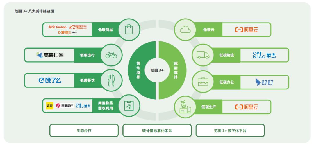 阿里不仅制定了必要的减碳目标(即2030年自身运营碳中和,价值链碳强度减半),还提出了“范围3+”的理念。“范围3+”是那些虽然不在阿里自身产业链范围内,但是能够通过带动或赋能实现的减碳。集团承诺,要在15年内实现15亿吨的减排。