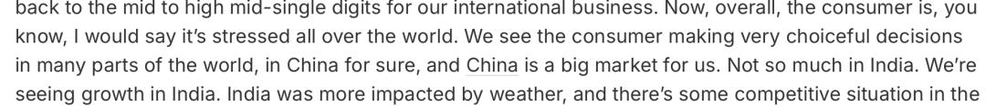 百事董事长兼CEO龙嘉德甚至在财报会上坦言,尽管全球业绩喜人,但消费者依然保持谨慎,尤其是在中国市场。
