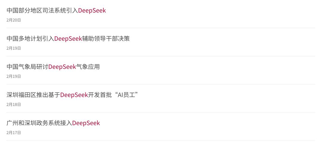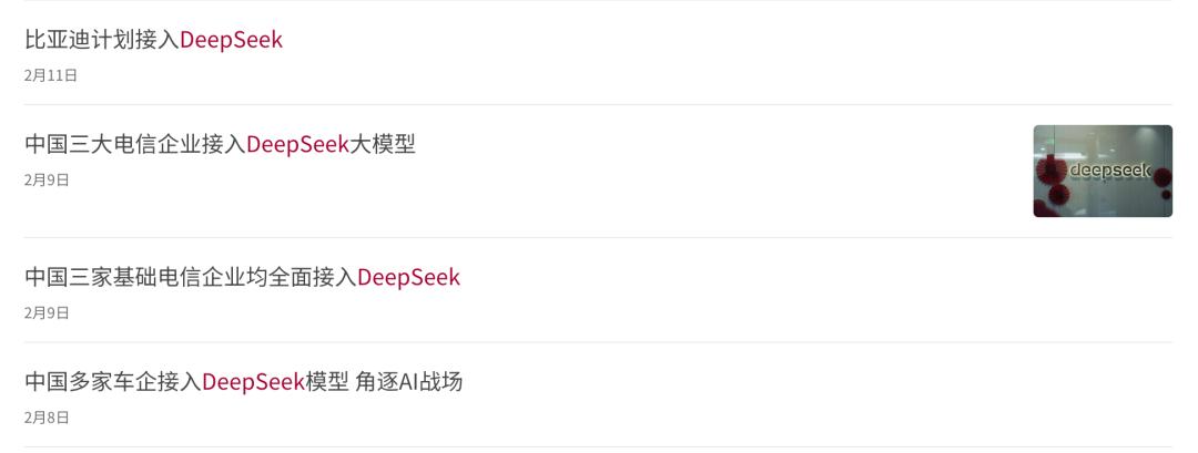 当时关于 DeepSeek 大量的新闻,都是哪里接入了 DeepSeek,图片来源:zaobao.com