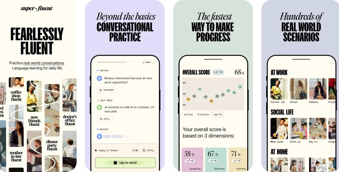 Superfluent 基于 OpenAI 和 Google 的模型组合构建,使用对话式 AI 来评估用户的流利程度,并创建适合的对话场景,比如在咖啡馆点咖啡,或邀请朋友参加派对。
