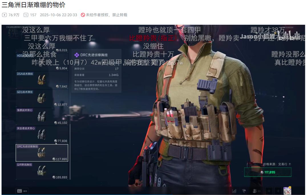 坦白说,这当中的确能反映出“搜打撤”产品的一些痛点。尤其是针对经济膨胀问题,这也是“搜打撤”赛道一直未能妥善解决的问题。过往,《逃离塔科夫》等通过赛季清空能勉强压制,但三角洲是不清空的机制,游戏初期可能没有那么明显,可随着长线运营以及玩家资源积累,现阶段“经济膨胀”的问题渐渐浮出水面。