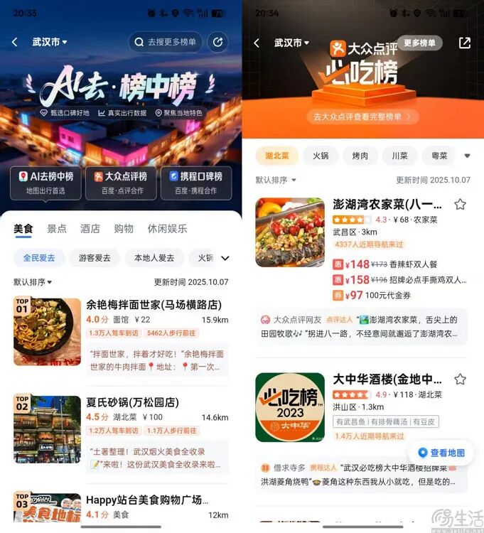 近日百度地图App迎来更新,新增本地生活服务榜单产品“AI去·榜中榜”。与高德扫街榜一样,百度地图的“AI去·榜中榜”也是基于真实出行数据,让用户“用脚投票”。不过需要注意的是,“AI去·榜中榜”集合了大众点评与携程口碑榜,并且还与美团打通,引入了后者的团购商品。
