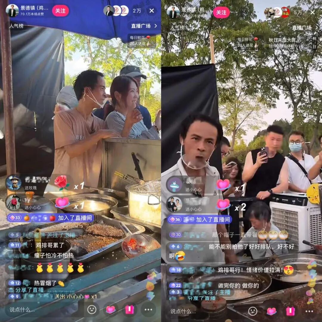 国庆8天假期,众多游客从全国各地远赴景德镇,只为与“鸡排哥”见一面。在“鸡排哥”的直播间内,可以看到不少游客表示,自己等待了三四个小时,才买到“鸡排哥”亲自炸的鸡排。
