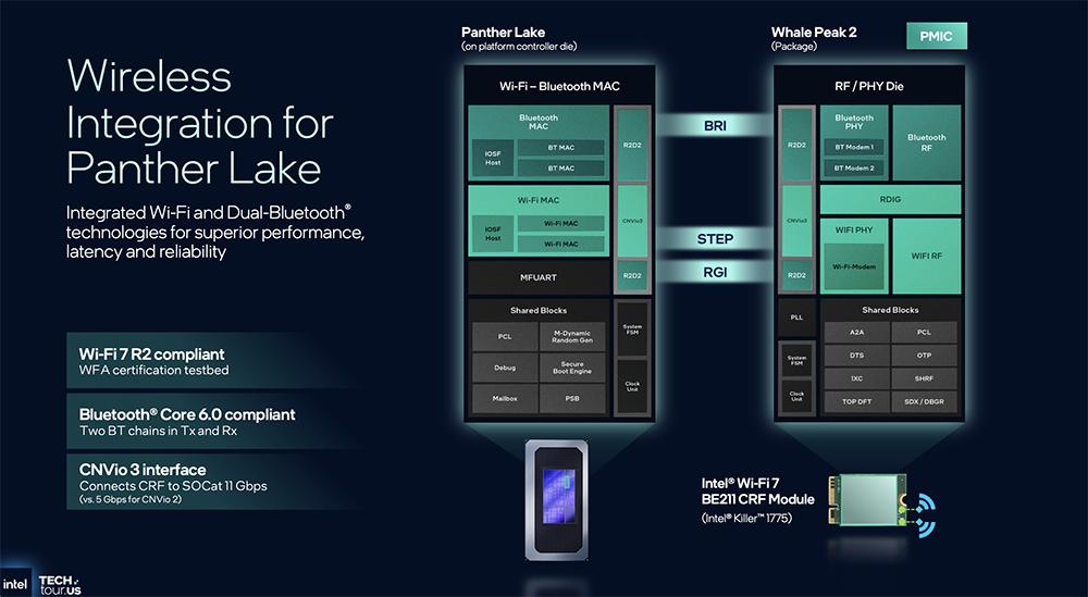 Panther Lake还添加了两项重要的无线连接升级,分别是Wi-Fi 7 R2和蓝牙LE音频解决方案。