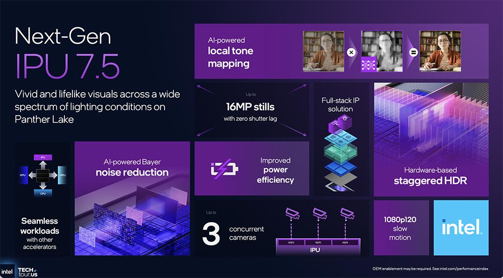 升级的图像处理单元IPU 7.5,具备AI光学降噪、AI局部色调映射等功能,可增强暗光环境下的图像清晰度,呈现更清晰自然的视频效果。这些AI功能便由CPU+GPU+NPU组成的AI引擎提供支持。