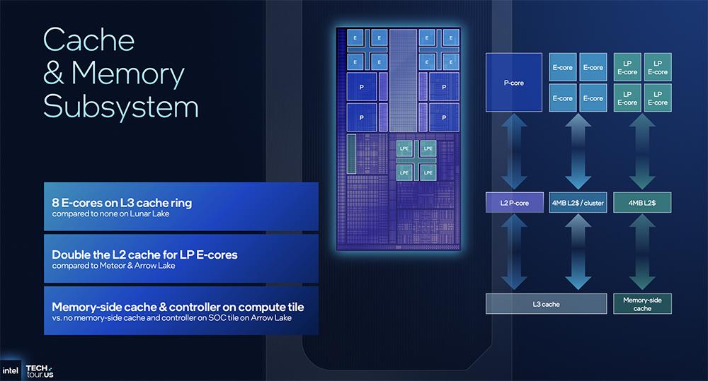 其SoC tile内还有一个额外的内存侧缓存和控制器。缓存配备了专用电源轨,使缓存频率可以超过3.5GHz。