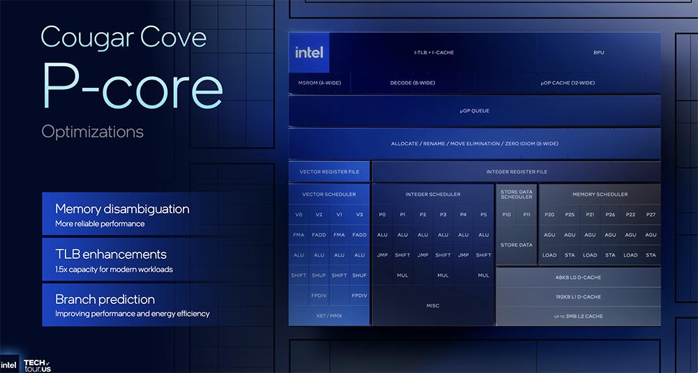 Cougar Cove P核重点关注3个方向:内存消歧、TLB增强功能、分支预测,使复杂工作负载运行得更快更可靠。