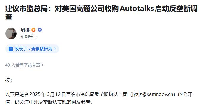 就在刚刚,市场监管总局的一纸立案调查公告将高通公司推上了风口浪尖——因其收购以色列V2X芯片企业Autotalks未依法申报经营者集中,涉嫌违反反垄断法。