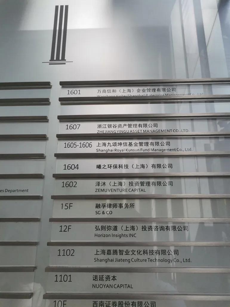10月10日下午,《每日经济新闻》记者来到位于上海浦东陆家嘴地区的上海九颂山河办公场所,只见一间办公室的前台幕墙上“九颂山河”四个大字处于最显眼位置,下方九颂坤信、银谷资产、九颂律所三家单位并列。