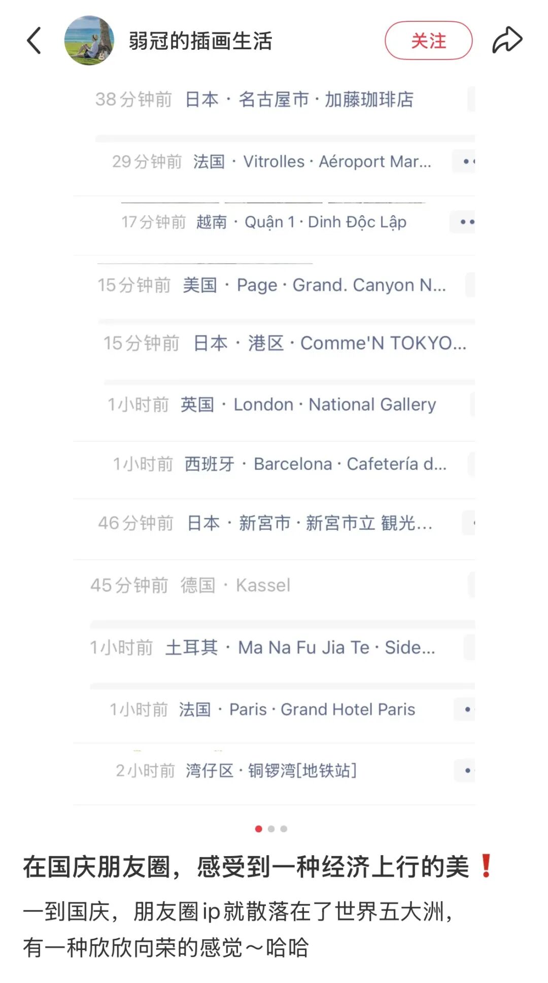 假期的朋友圈就更热闹了,大家晒出的精修九宫格中带着五花八门的定位,选择留在家里玩手机的人刷到也很容易感到焦虑:是不是只有我躺在床上啊!