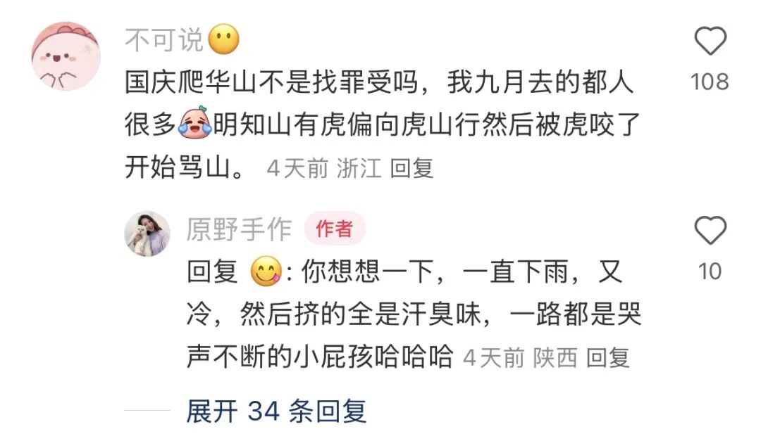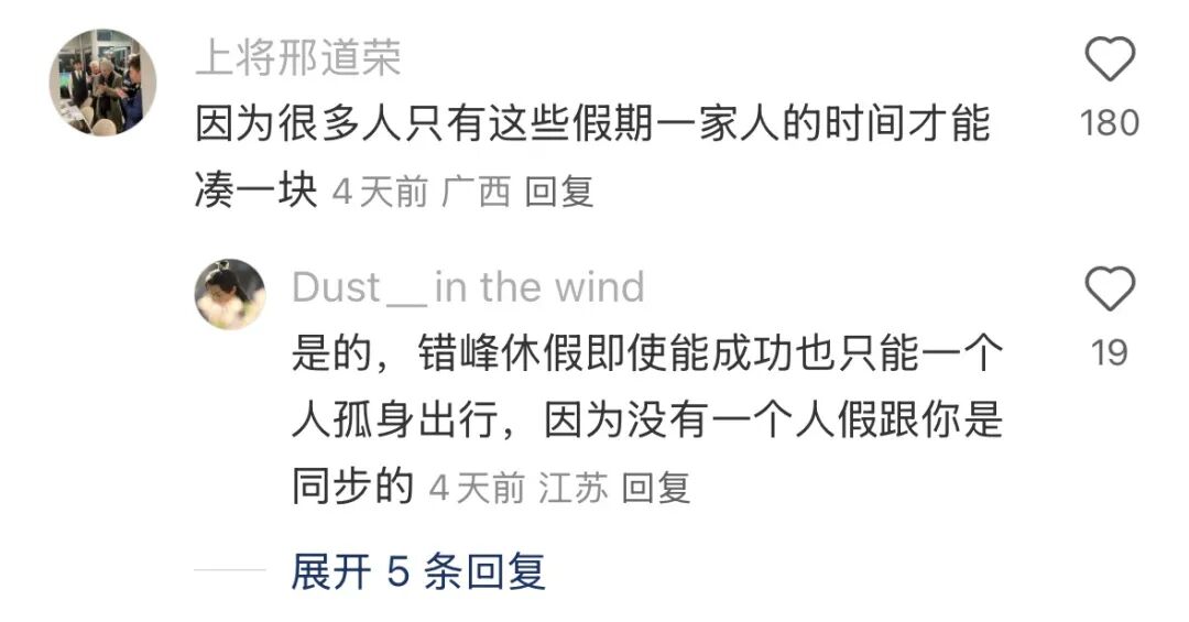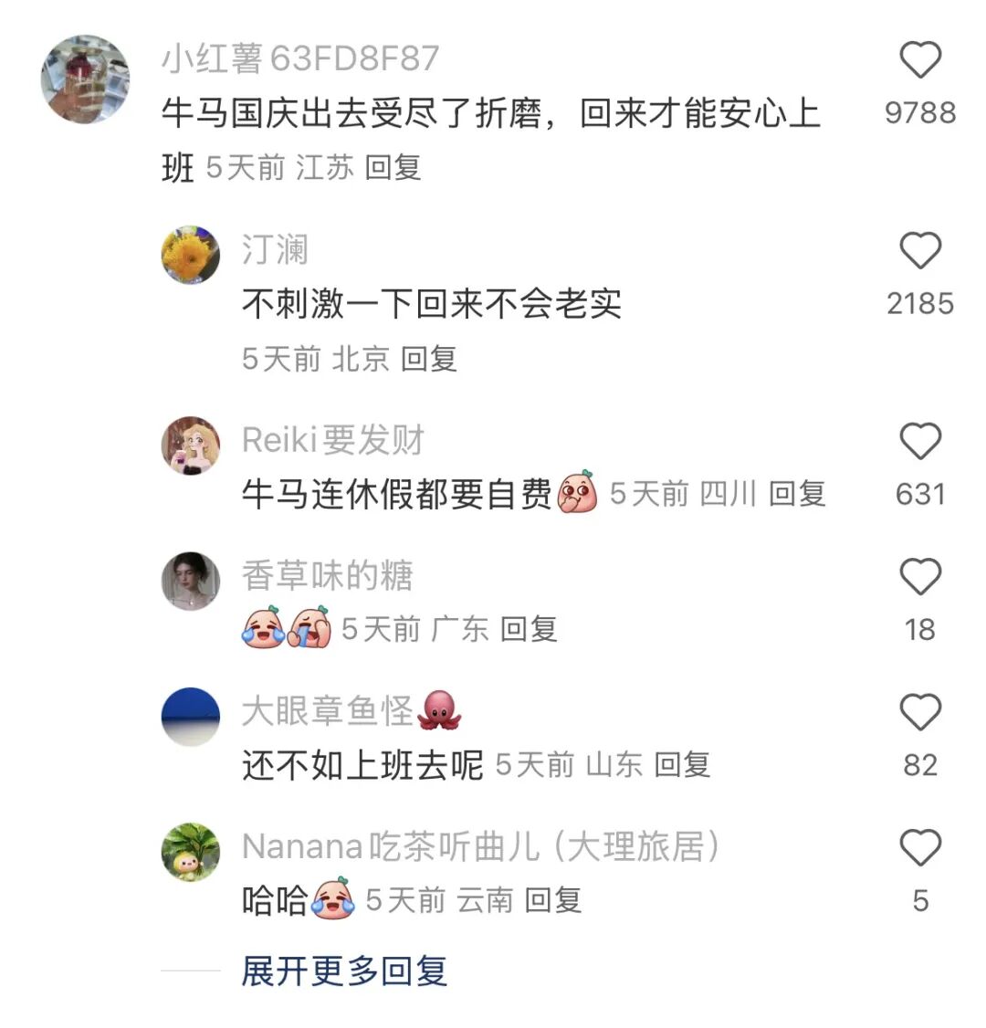 这些评论看起来在给建议,实际上在补刀。每个选择国庆节出游的勇士都知道必然哪哪都是人挤人,但他们依旧硬着头皮出去玩,为啥?