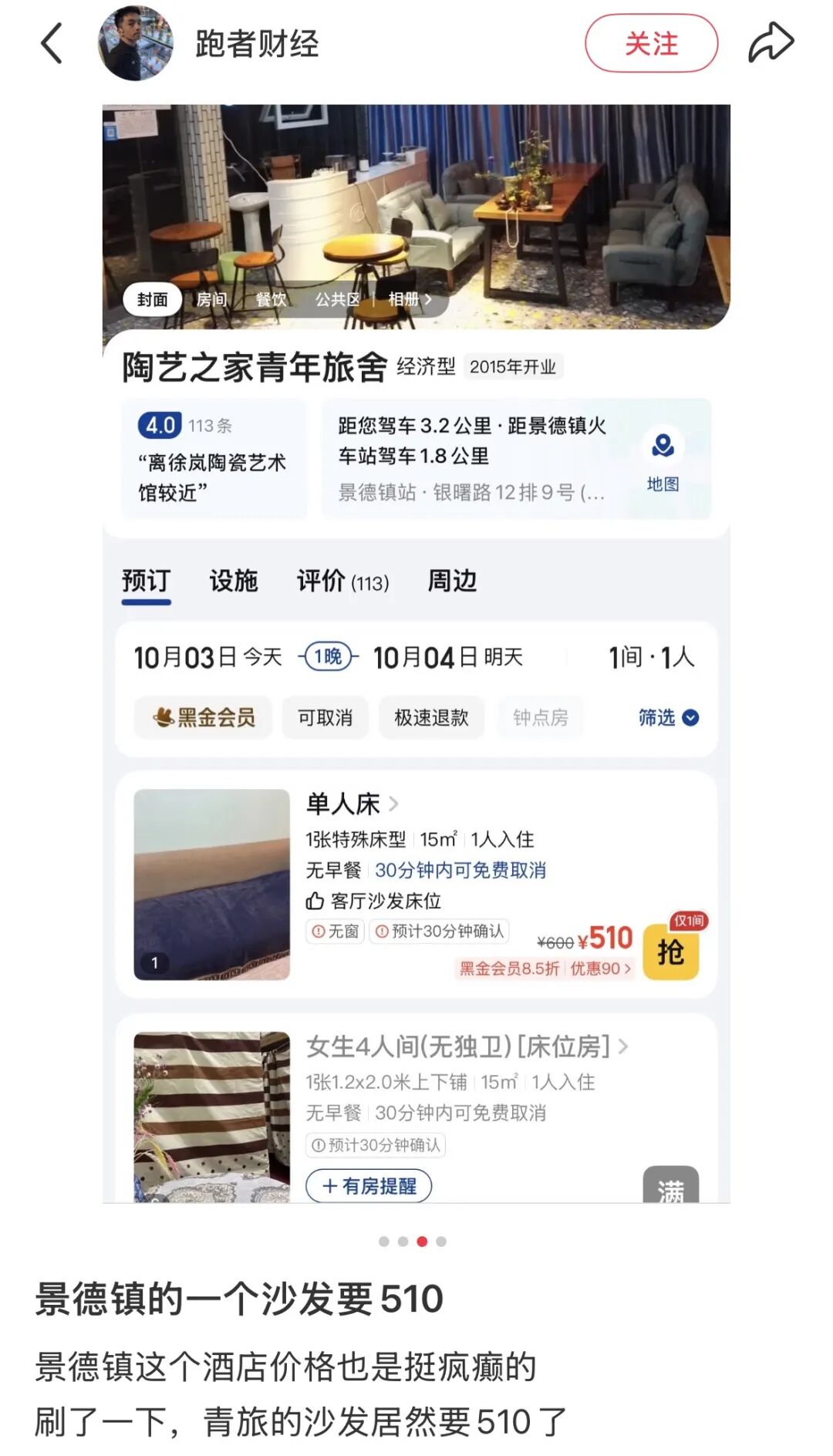 其实睡车里虽然难受,但也算省钱了,国庆期间很多酒店是又贵又让人难受。比如花510元睡这张沙发和露宿街头之间,多犹豫一秒都是对金钱的不尊重。