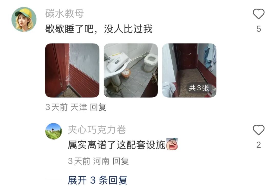 这位选手用掉漆的房门、坏掉的马桶、狭小的过道和暗红色的诡异氛围一举终结了比赛。这个恶劣的居住环境,任谁看了都忍不住感慨一句“太倒霉了吧”。