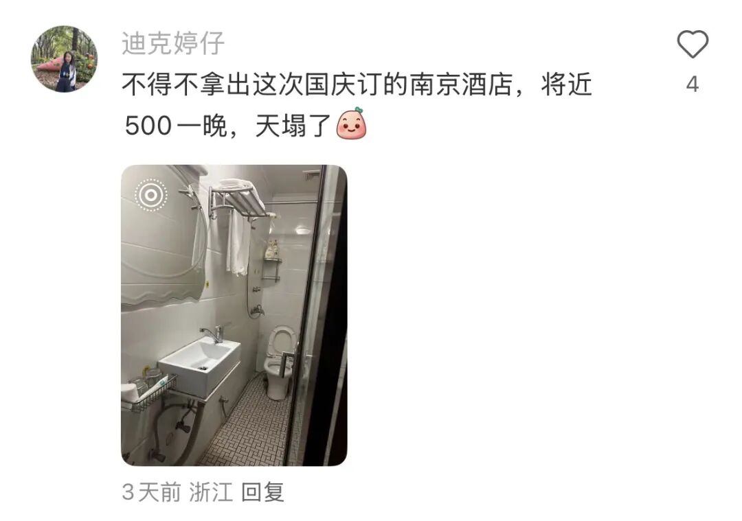 评论区很快开始比惨,这是500一晚的南京酒店。