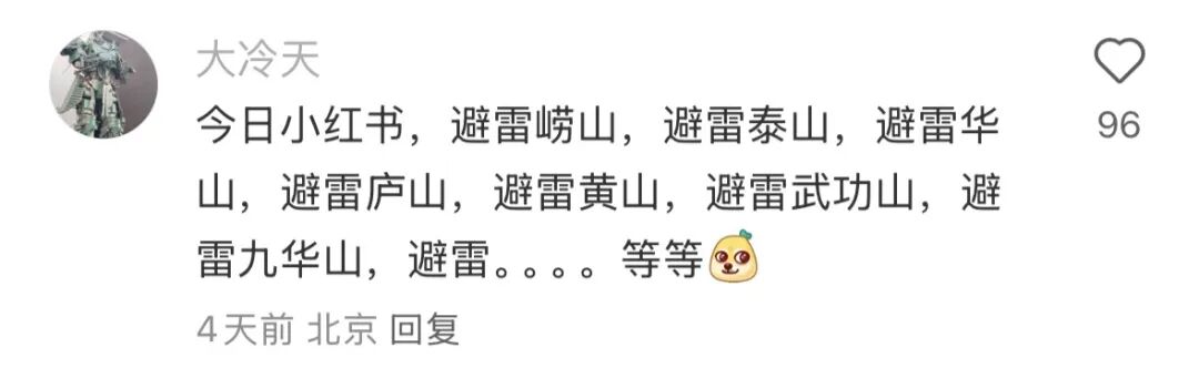 没下雨的庐山也被避雷了。博主说等缆车摆渡车排队40分钟,缆车排队90分钟,好不容易进了景区发现四处限流。评论区立刻有人回:哪止40分钟啊,排了一个半小时才坐上缆车,等的时候有人都热得中暑了。实属难兄难弟。