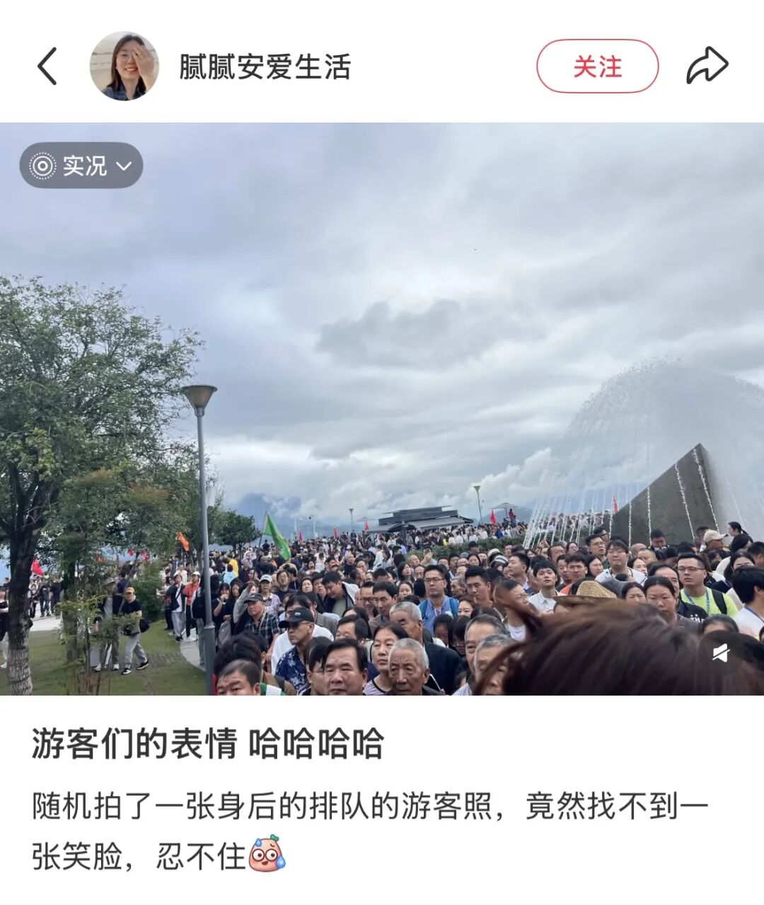 去哪都是要排队的,于是网友在排队大军里苦中作乐,向后拍了一张游客们的表情,发现0个人在开心。