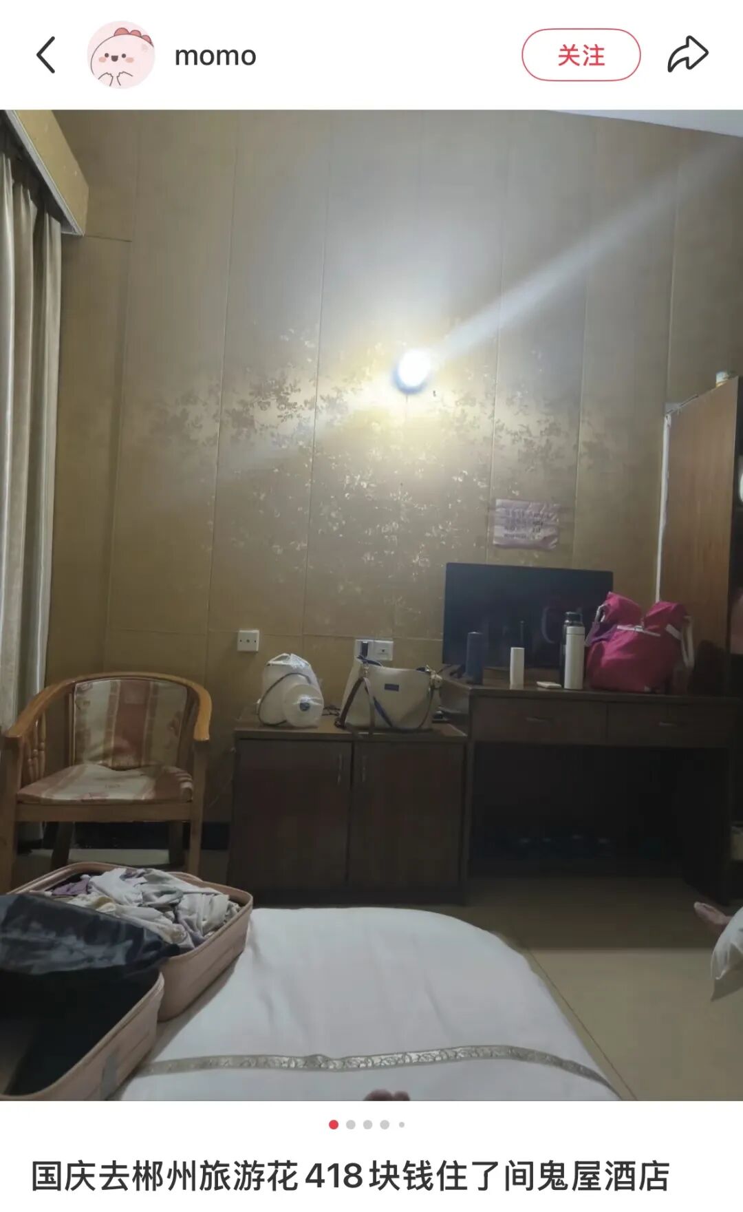 这家洛阳的酒店国庆期间卖297元,墙纸好像是90年代流行的粉色碎花,茶几掉了一大块,镜子都生锈了。