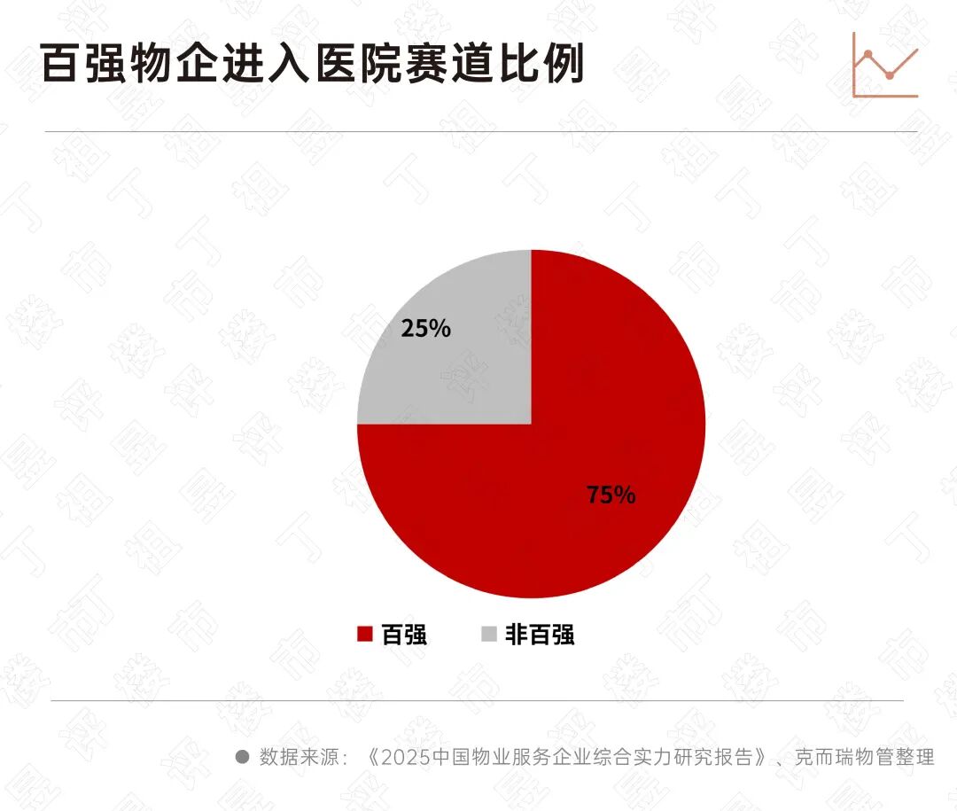 其中,医院物业赛道吸引上下游企业加速布局。随着医保制度持续改革,倒逼医院压缩后勤预算,尽管如此,百强物企中逾70%已进入医院服务领域,并且头部物业企业更是推出了聚焦医院后勤的子品牌。