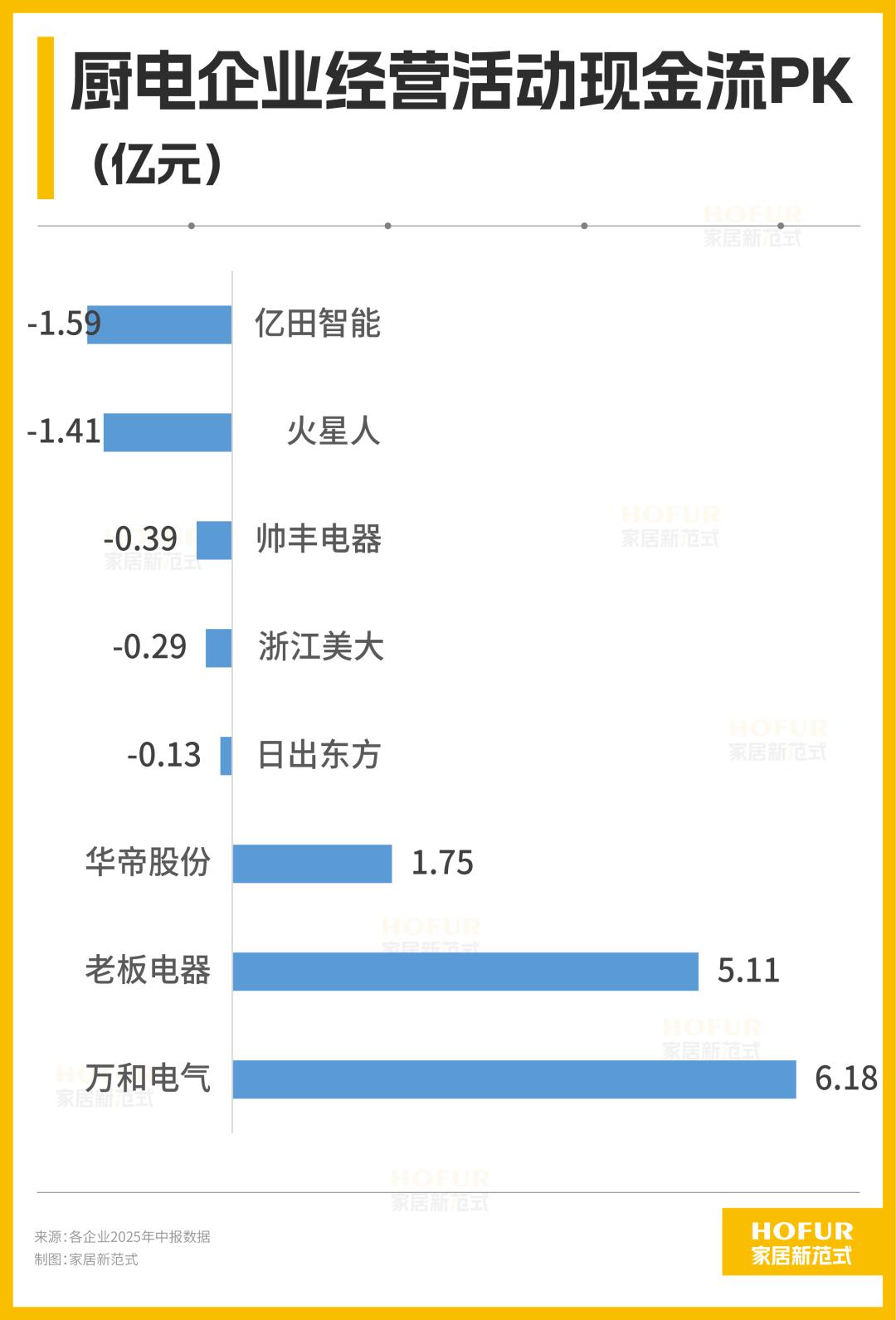 家居新范式发现,在存量竞争时代,现金流才是一个企业最大的底气。从经营活动现金流来看,巨头忙着“存粮”,新势力正在“失血”,老板电器、华帝股份现金流充足,造血能力强劲,存够了“粮食”抵御行业寒冬;反观集成灶品牌和日出东方,经营活动现金流为负,处于“失血”状态,过去的家底光拿来交学费了。