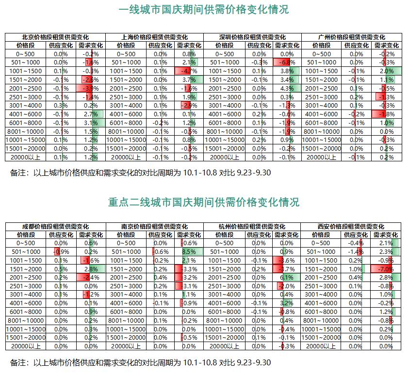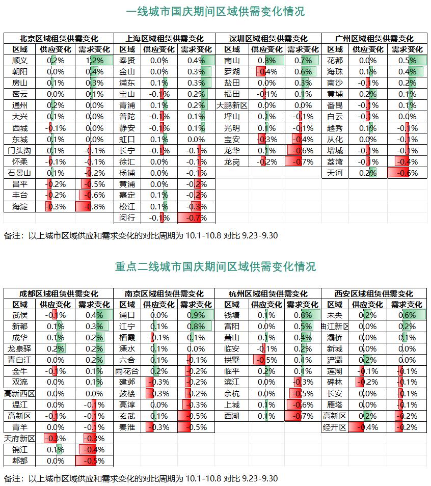 根据58安居客研究院监测数据显示,对比国庆假期前后区域租赁供需变化,整体租赁新增供应格局变化较小,但各城市区域间租赁需求热度表现分化。