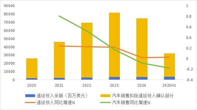 一方面,特斯拉的汽车销量越大,意味着其用户基数越可观,会直接带动FSD 订阅收入等软件服务业务的扩张,为未来 Robotaxi 的商业化奠定基础。事实上,近两年随着汽车保有量的增长,特斯拉的FSD收入增速有所加快,远超同期汽车销售。(备注:特斯拉并未直接公布FSD相关收入,但其递延收入余额主要是FSD、互联网连接、免费超充和软件更新相关的未确认部分。)