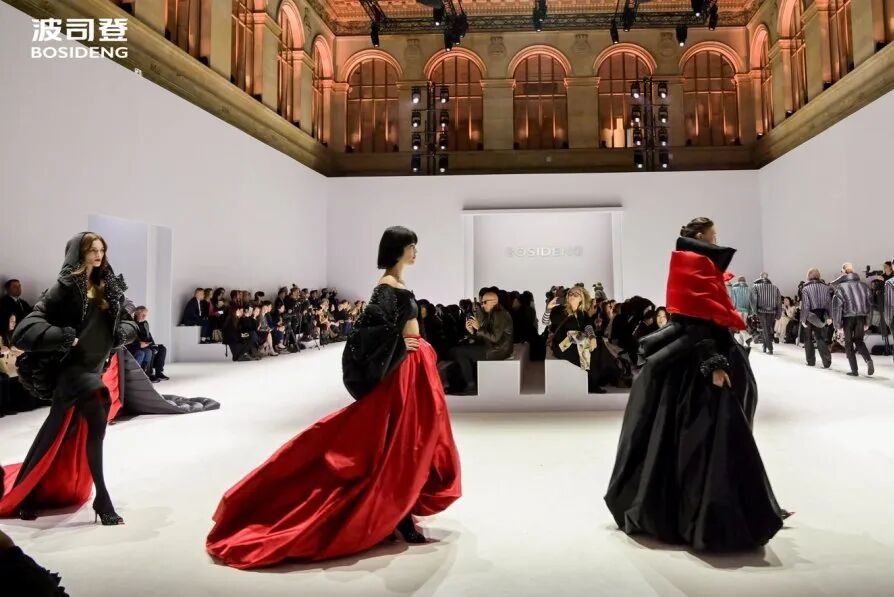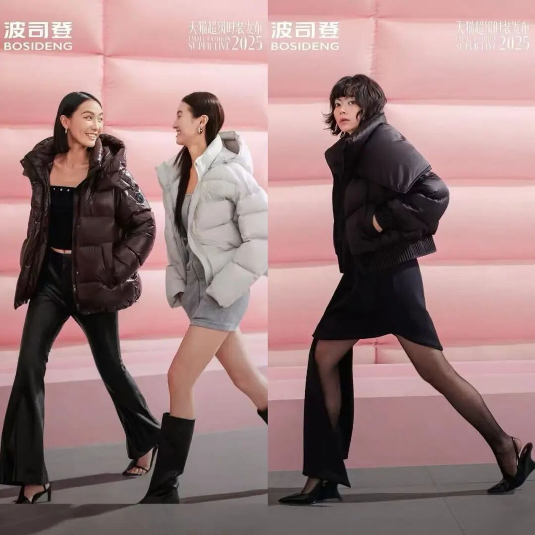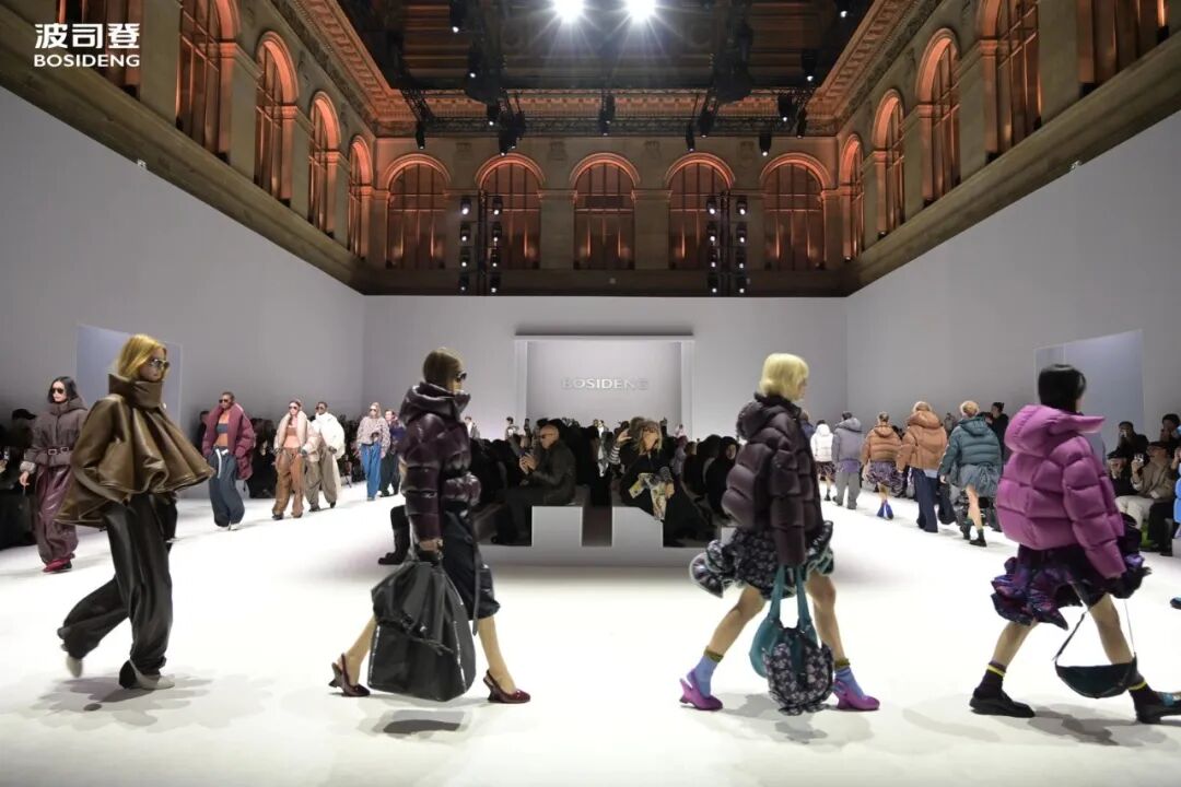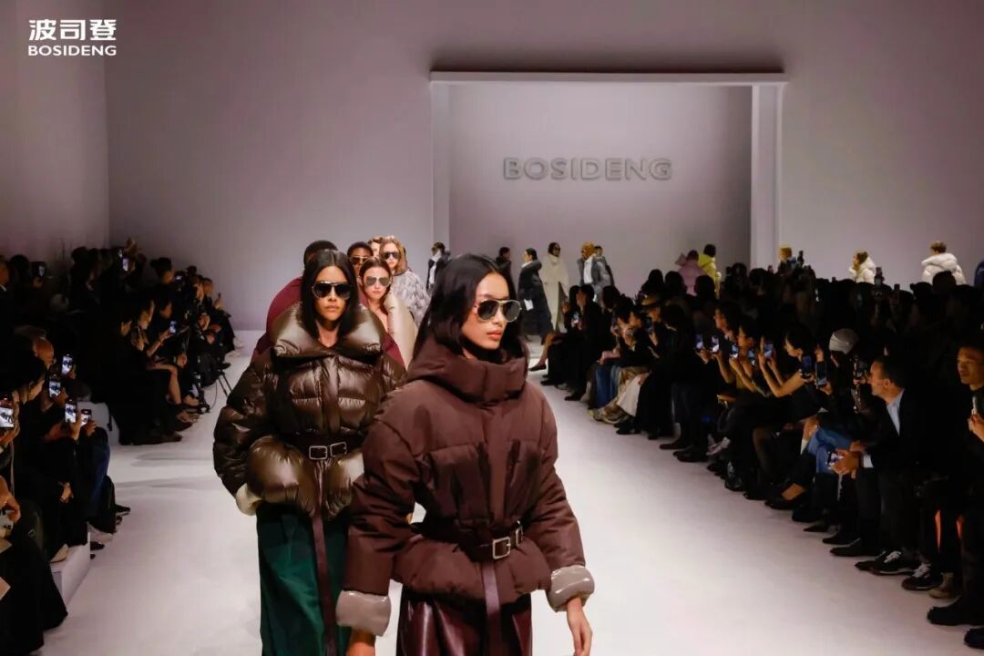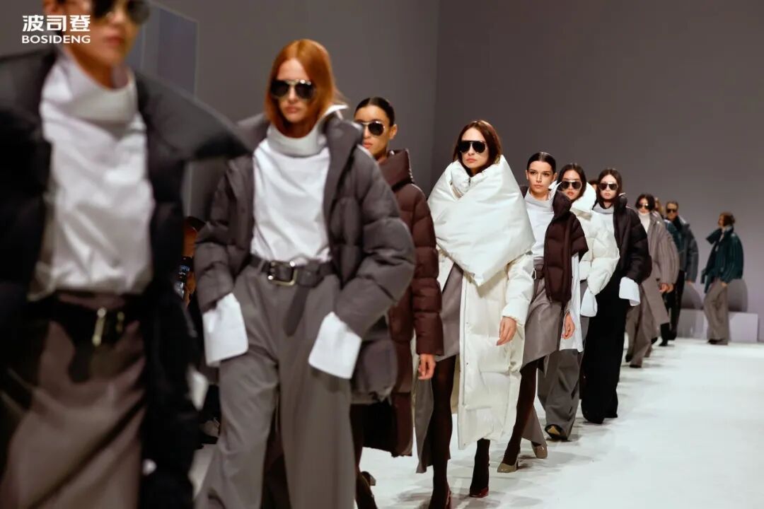 以波司登在巴黎时装周期间推出的泡芙系列羽绒服为例:据了解,这场大秀的灵感源于巴黎证券交易所穹顶松果般的层叠设计。蓬松的廓形为日常穿搭提供了“包容式解决方案”,上身给人满满的安全感。此外,这场大秀还同步接入天猫超级时装发布IP矩阵,以线下时装秀及线上云秀场的双场景模式,开启羽绒服“轻盈的温暖进化”。