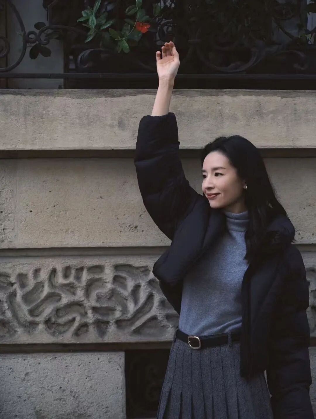 ● 董洁上身波司登泡芙系列羽绒服,向左滑动查看更多