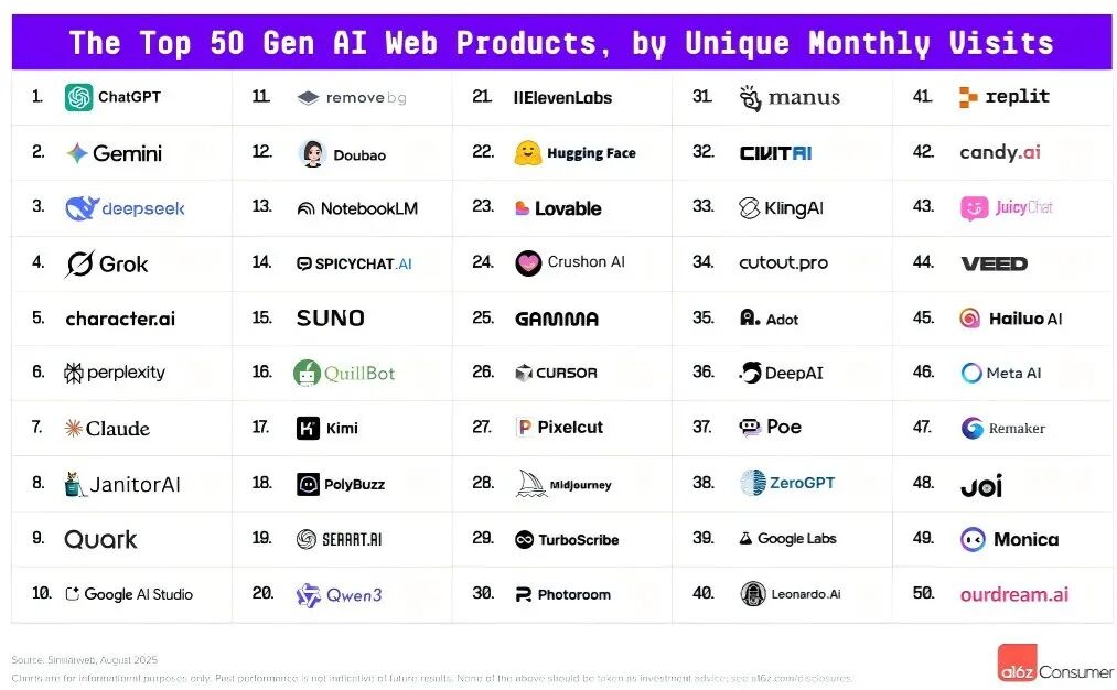 到了2025年,据a16z今年8月发布的第五版榜单,连续霸榜的AI陪伴公司实际仍有不少。