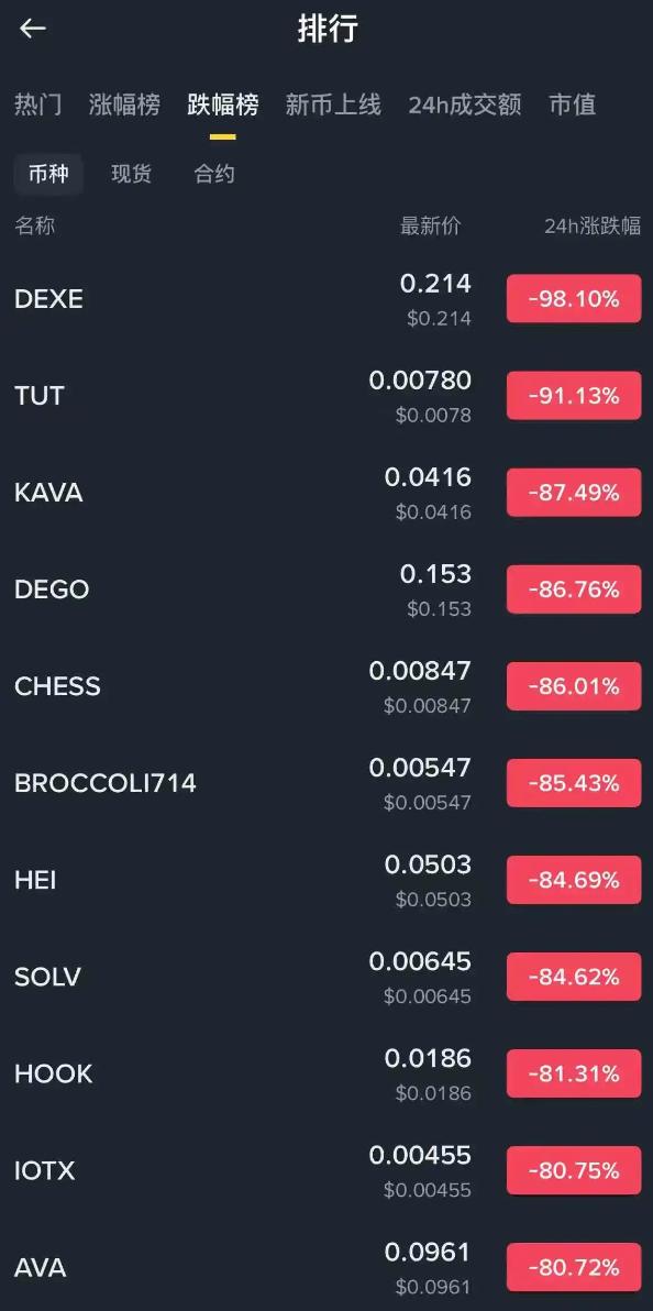 主流币尚且如此,山寨更是惨不忍睹,多个山寨币短线跌幅超过 80% 甚至 90%。这是在此前的 312、519 中,都没有出现过夸张的单日跌幅。
