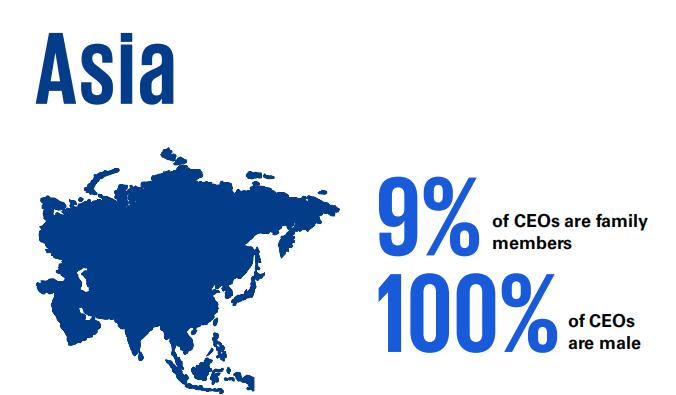 · 4%的CEO是家族成员;79%的CEO是男性;