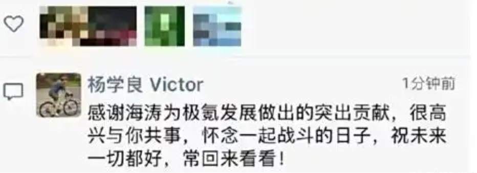 吉利集团副总裁杨学良,通过朋友圈回复的方式,给出了“回应”:
