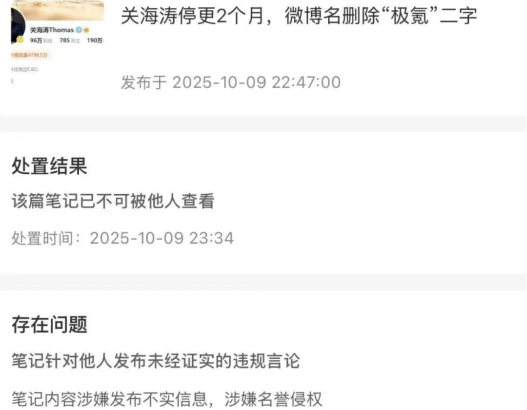 但过去几个月,各个平台大部分转载关海涛离职的帖子或文章,都遭投诉下架,理由是涉嫌发布不实信息,侵犯名誉权: