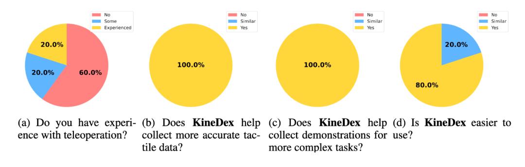 用户研究也表明,人们觉得KineDex这种手把手教学的方式更直观、更高效,更容易收集复杂任务的数据。