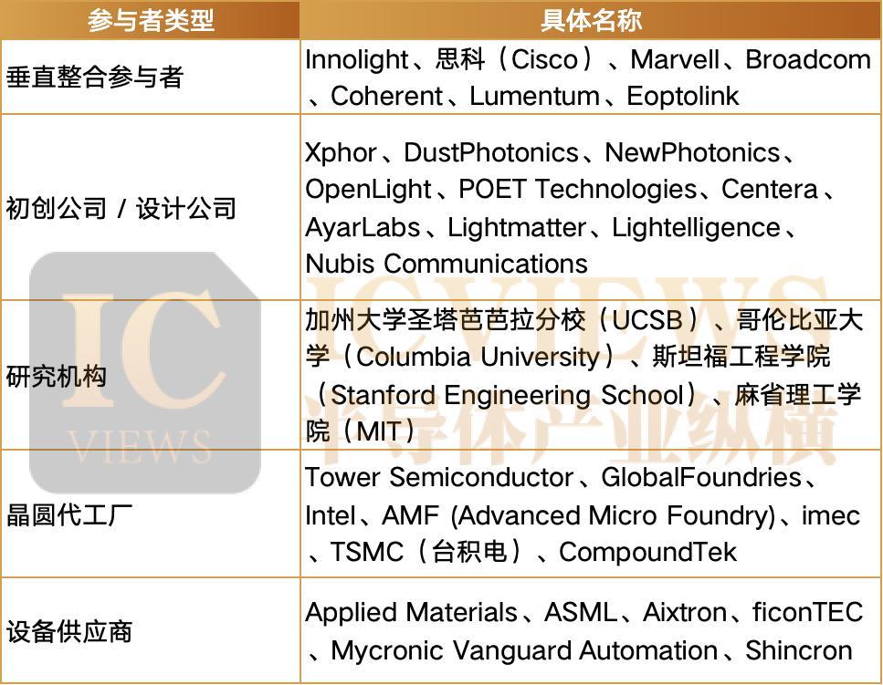 从产业链结构看,硅光产业已形成“上游基础支撑 — 中游制造核心 — 下游应用拓展” 的完整链路。上游环节中,高质量硅基材料(如 SOI 晶圆)、先进光刻设备(尤其用于硅光芯片精细结构加工的设备)及专业电子设计自动化(EDA)软件,是硅光芯片研发的技术基石;中游的芯片制造(流片工艺)与封装测试环节,直接决定硅光芯片的性能指标、量产良率与成本控制能力;下游系统集成商则将硅光芯片与其他电子元件结合,开发出适用于不同场景的光通信模块、光计算系统等终端产品。目前,全球硅光产业链协同效应已初步显现,不同环节的企业与科研机构各司其职,共同推动产业从技术验证向规模化量产迈进。
