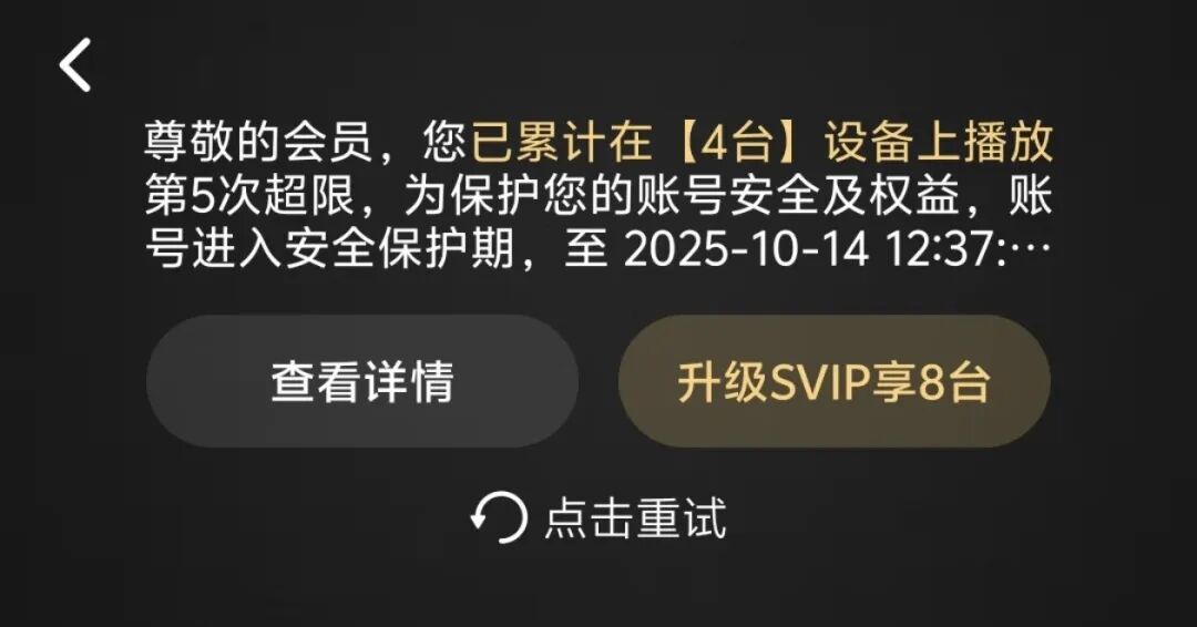 “我的账号为何被封?”视频VIP登4台设备被封,消耗天数不还