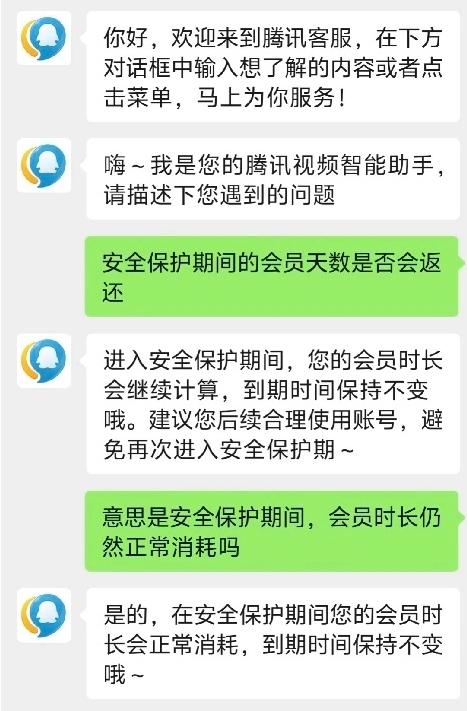 赵志伟、李洋等人还关心安全保护期间会员天数是否返还的问题。“进入安全保护期间,会员时长会继续计算,正常消耗,到期时间保持不变。”客服人员如是说。
