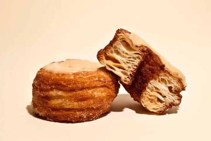“一种新的融合食品加入了冰淇淋蛋糕和火鸡鸭鸡的行列。”这种用羊角面包面团像甜甜圈一样油炸、填充奶油、顶部淋糖浆的糕点,5美元一个,引发了长队和无数模仿者。