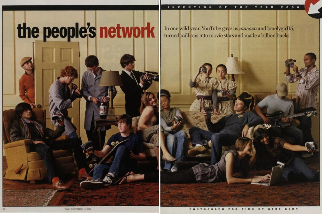 2005年4月,YouTube开始托管视频剪辑,第一个上传的是仅有19秒时长的动物园之旅,叫“Me at the zoo”。到第二年秋天,每天有7万个视频上传。如今是每天超过2000万个。创始人“拼凑出一个简单程序,能让任何格式的视频在几乎任何电脑的任何浏览器上播放。”后来,谷歌以16.5亿美元收购时,《时代》写道:“视频可能不够精美,但它们是真实的……在YouTube上的标准是真实性。这就是为什么像帕丽斯·希尔顿这样的名人要和一只困倦的小猫竞争——而且会输。”