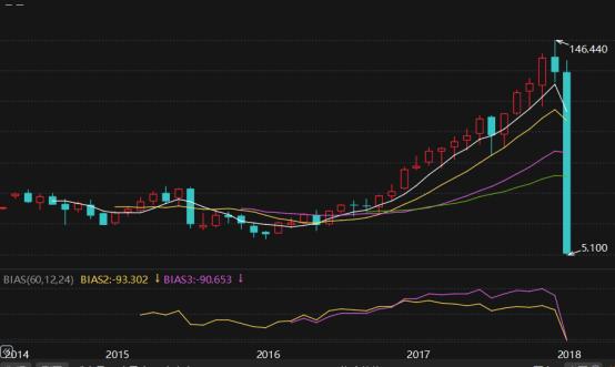 然后,就出现了后面那根从天而降的大阴线,而且是在一夜之间发生,这个XIV就是这次“波动率末日”的主角。