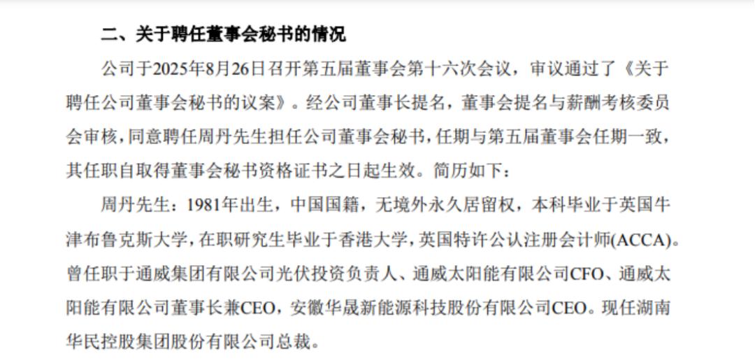 2022年5月,周丹华丽转身,加盟异质结初创企业华晟新能源,担任CEO,成为仅次于创始人兼董事长徐晓华的二号人物。
