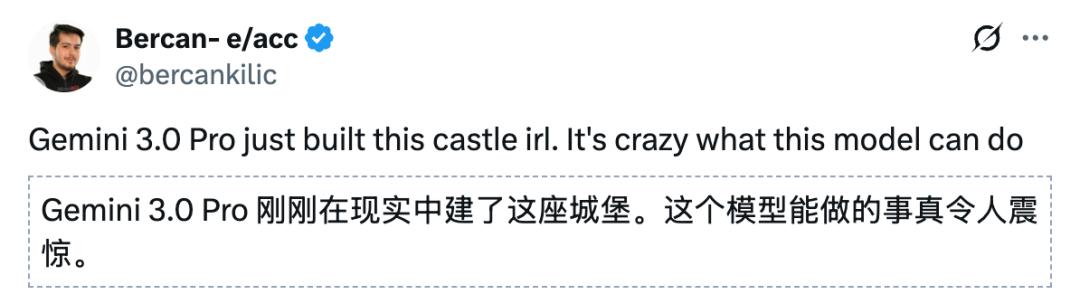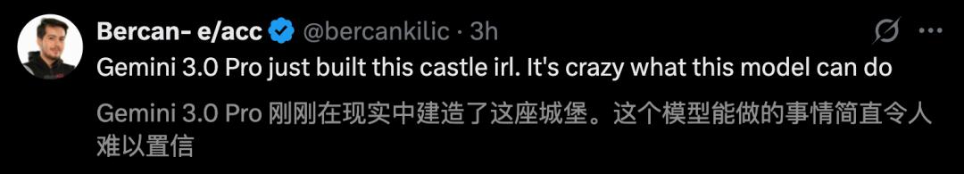 还有人说Gemini 3 Pro创建了这座堡垒!但没有透露具体的Prompts。